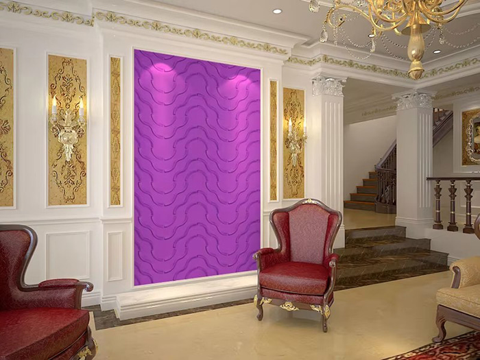 PVC 3D vægpaneler er kompositpaneler lavet af polyvinylchlorid (PVC) harpiks som kerneråmaterialet, som formes til tredimensionel relief, gradienttekstur eller dynamiske lys- og skyggeeffekter gennem 3D-print eller CNC-graveringsteknologi. Overfladen anvender UV-hærdende belægning eller højpræcisionsoverførselsteknologi for at simulere den naturlige tekstur af trækorn, stenkorn, metal osv., og har egenskaberne vandtæt og fugtsikker, brandhæmmende, letvægts og høj styrke. Det er velegnet til eksklusive hoteller, kommercielle rum, kunstudstillingshaller og andre scener og er et innovativt alternativ til traditionelle dekorative materialer.