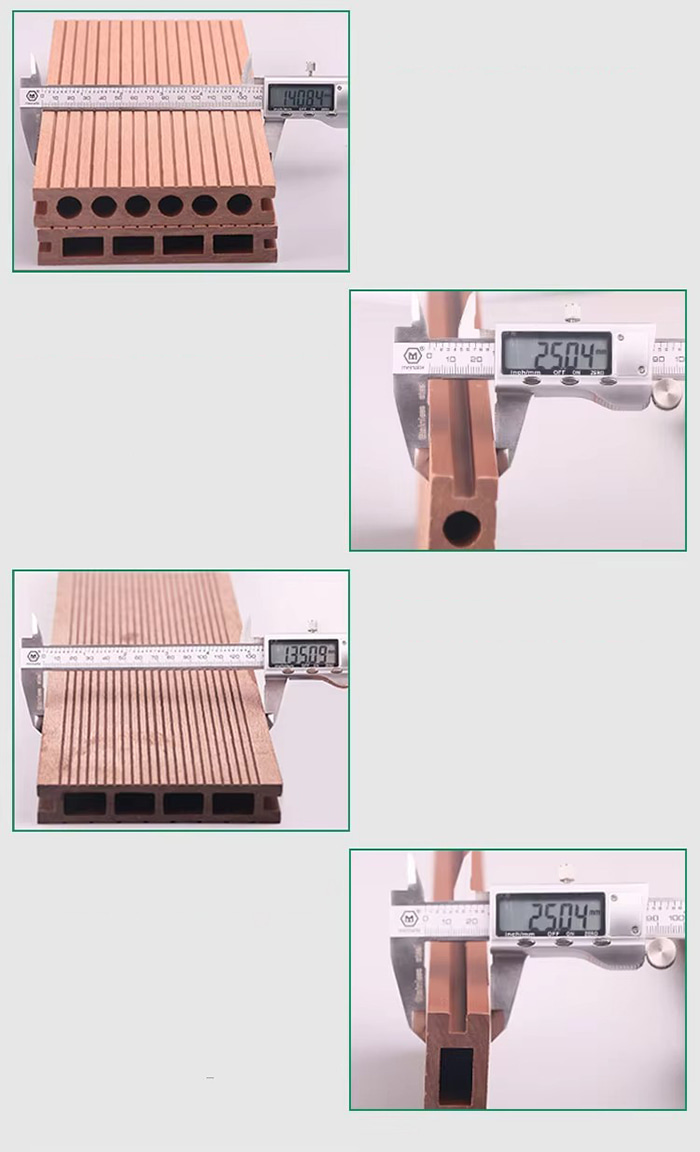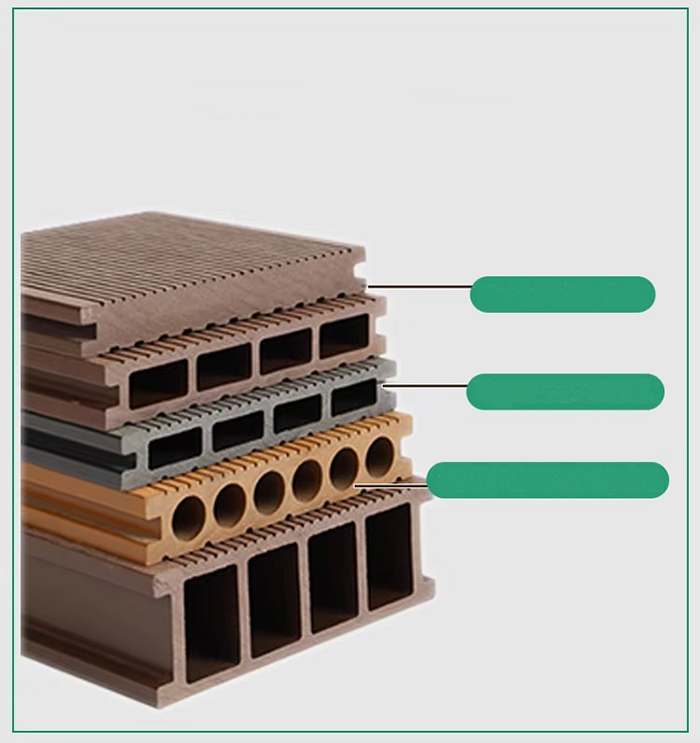 Substratblanding Træfiber (50-60 %) PVC-harpiks (30-40 %) kulfiber anti-korrosionslag (5-10 %), tilføjer flammehæmmende aluminiumhydroxid for at forbedre til A2-kvalitet.