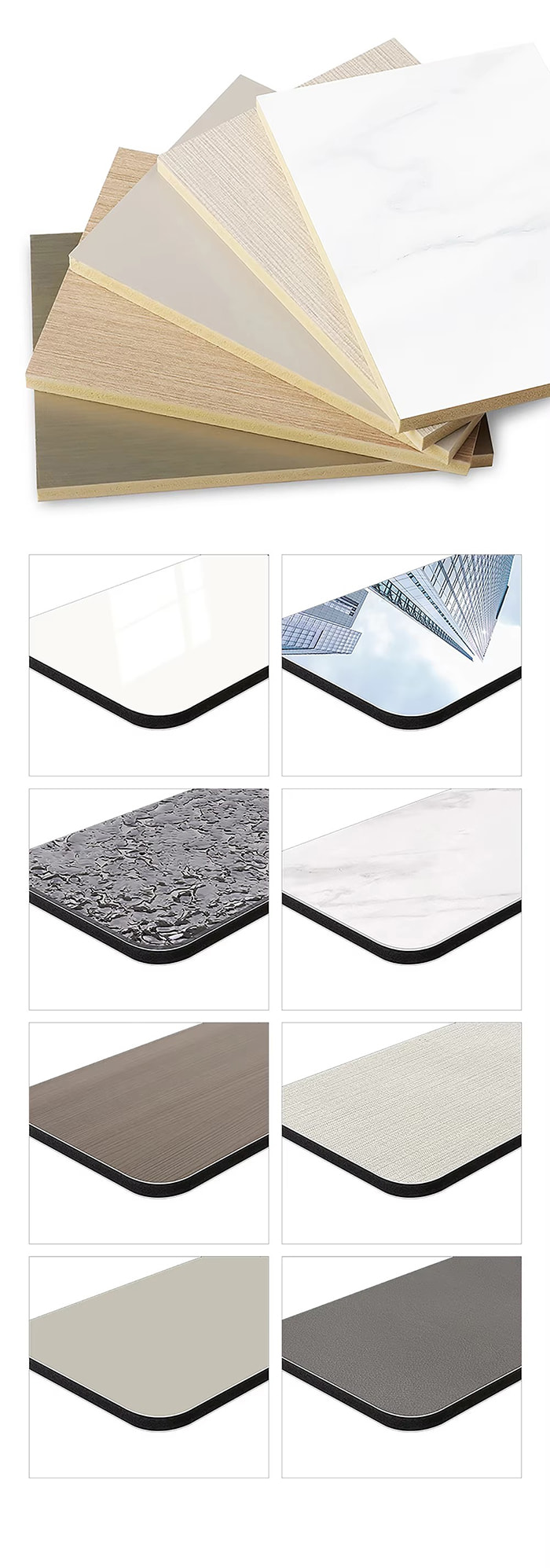 Rige farver og mønstre kan tilpasses med en række forskellige overfladebehandlinger såsom trækorn, stenkorn og metalbørstning for at opfylde forskellige stilkrav.