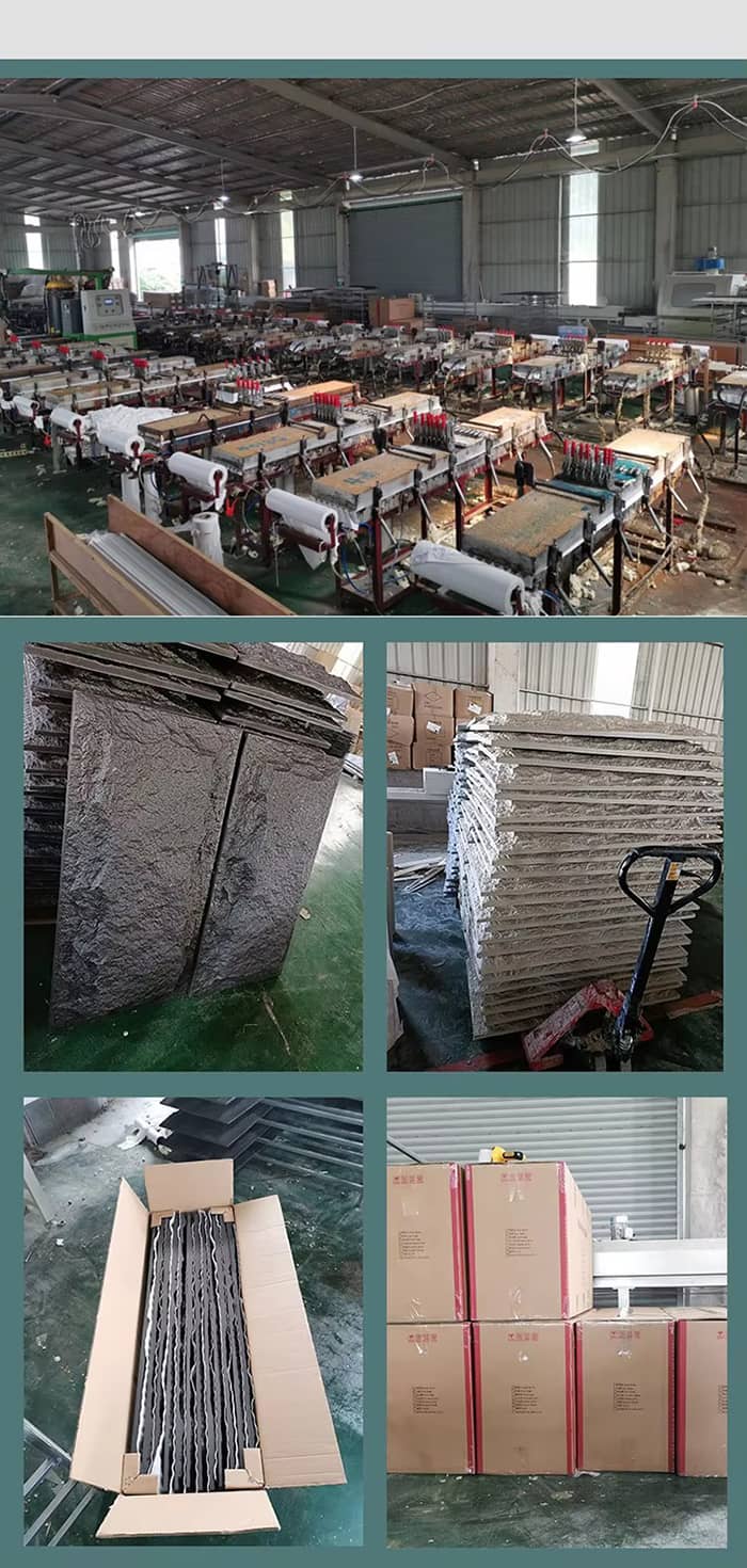 Produktionsproces: PU vægpaneler anvender normalt avanceret sandwichpanel kontinuerlig produktionslinje, som er dannet ved koldbøjning af galvaniserede (aluminium-zink) farve stålplader indvendigt og udvendigt, og polyurethan stift skumbelægning i midten.