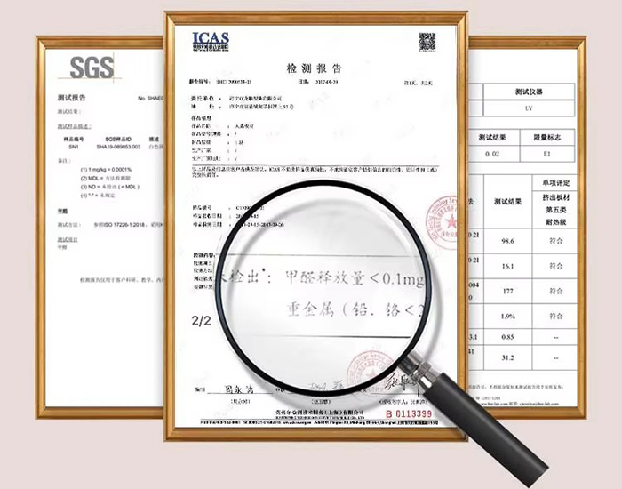 KvalitetsinspektionFormaldehydfrigivelse: EN 717-1 standard, lukket kabine test ≤ 0,05mg/m³.