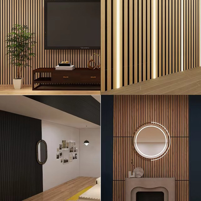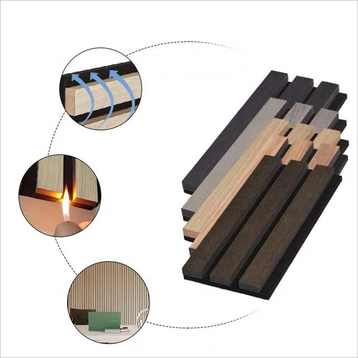 WPC lydabsorberende plade er et miljøvenligt lydabsorberende dekorativt materiale lavet af træ-plast kompositmaterialer. Den anvender forarbejdningsteknologien fra økologisk træ, med riller på forsiden og huller på bagsiden af basismaterialet for at danne en slidsresonans lydabsorberende struktur. Dette design gør, at WPC-lydabsorberende plade ikke kun har en god lydabsorberende ydeevne, men også har vandtæt, fugtsikker, insektsikker, termit-sikker og andre egenskaber. Dens overflade kan dekoreres med naturlige træfibre eller en række forskellige farver for at give rige visuelle effekter.