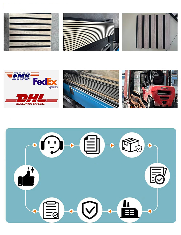 Kvalitetskontrol: Under produktionsprocessen bliver WPC lydabsorberende paneler strengt kvalitetskontrolleret, inklusive dimensionsnøjagtighed, fladhed, tæthed, brandmodstand, miljøbeskyttelse og andre aspekter.